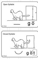 These dinosaur pictures help students distinguish between Open and Closed Syllables. This is further explained in the book.